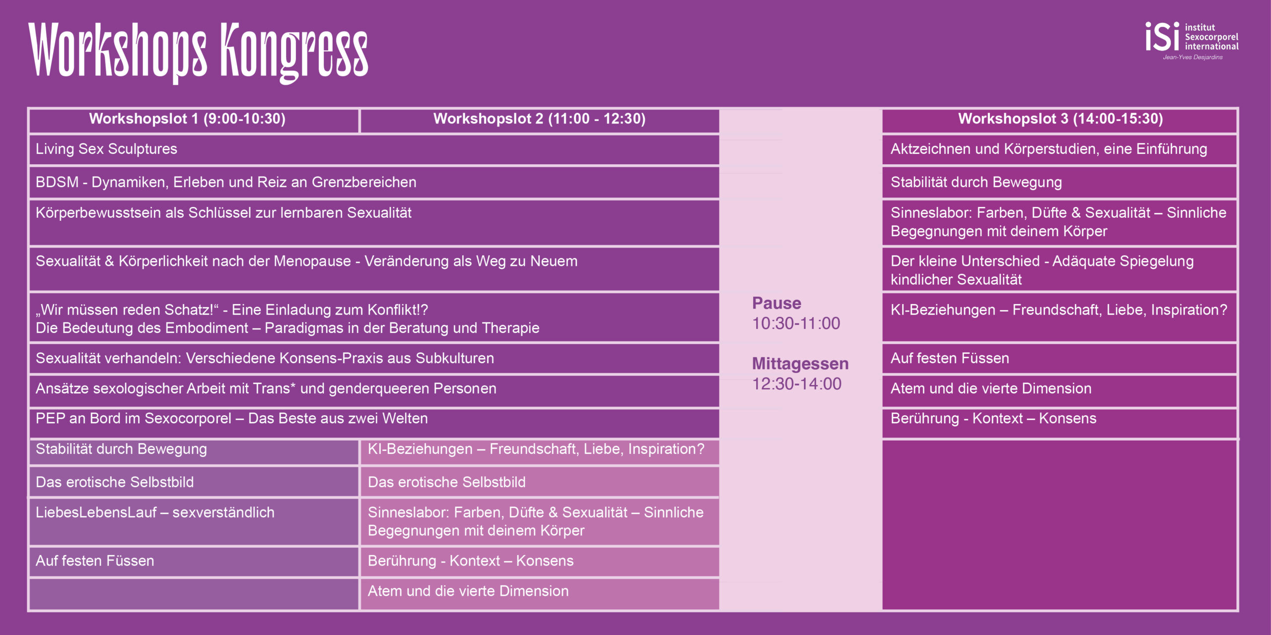 Der 16. ISi-Kongress widmet sich deshalb der Frage, wie der Körper in der Sexualität bewusst integriert und in der sexualtherapeutischen Praxis wirksam genutzt werden kann: als Medium des Ausdrucks, der Regulation und der Verbindung. Zugleich soll reflektiert werden, wie digitale Technologien und KI die körperliche Dimension von Sexualität herausfordern, transformieren und erweitern.